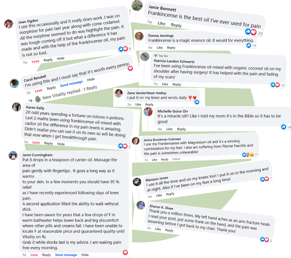 Toss aside your pills & remember what it felt like to NOT hurt, with 100% pure Frankincense Essential Oil, sourced directly from the resinous bark of the Boswellia tree.